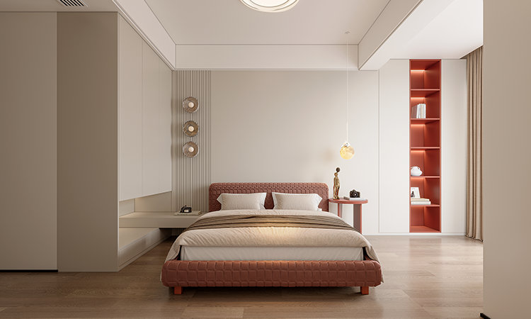 將陽臺納入客廳,橫廳劃分成客廳與書房,實現一廳多用。各空間定制大量儲物柜,滿足不同收納需求。多功能套房布局確保每位居者都有專屬空間,迎合居者對高品質生活的追求。